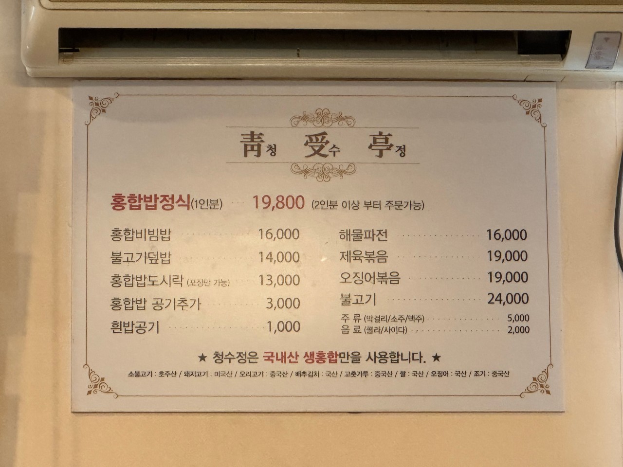 | 분위기 | 4.5 | 넓고 쾌적, 룸 완비, 가족/모임/외국인 접대 적합 |